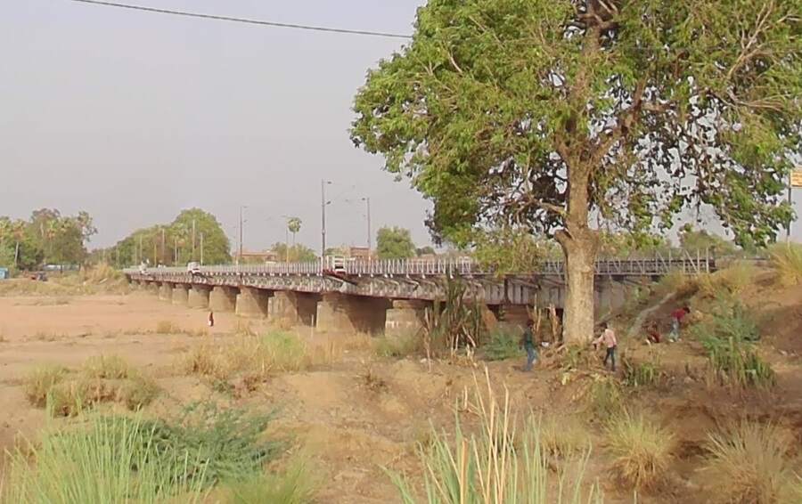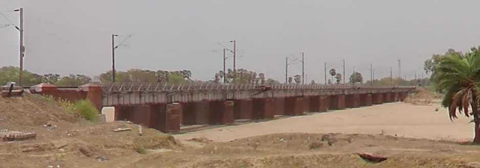 The next photograph shows the older single track metal girder bridge a little further to the West of Etmadpur with the more modern second line carried by a reinforced concrete viaduct.