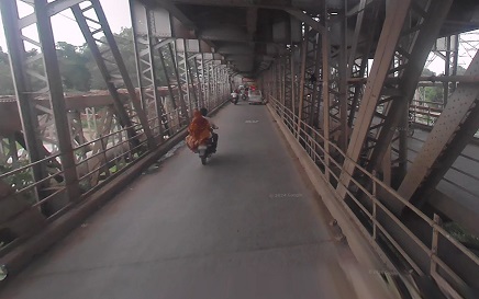 The ‘Strachey Bridge’, to the North the older bridge at Agra, was opened in 1908. It was a combined Road and Railway bridge and constructed by the ‘East Indian Railway Company’ (EIR). The bridge was named after John Strachey who planned & designed the bridge. The 1,024 metres (3,360 ft) long bridge was completed in 1908, taking 10 years to complete since its construction commenced in 1898. The ‘Agra City Railway Station’ was thus connected by the bridge to the ‘Jumna Bridge Station’ on the East bank. This Broad Gauge line became the ‘EIR Agra Branch Line’. [18]