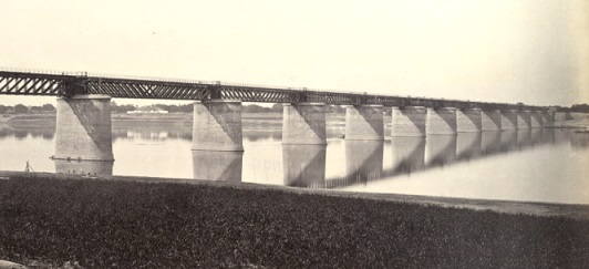 But this is not sufficient for the needs of Agra, though supplemented by a pontoon bridge which crosses the river half a mile further up the stream. The trade of Agra first attracted the East Indian Railway, then came the Rajputana Malwa, and then the Great Indian Peninsular. Each of the latter two lines wanted a share, and the East Indian had to fight for its rights; to do its utmost to keep to the Port of Calcutta what the rival lines wanted to take to Bombay. Another railway bridge became a necessity, a bridge that would take the East Indian Railway line into the heart of the native city instead of leaving it on its outskirts, and the East Indian Railway began to construct it.” [1: p42-43]