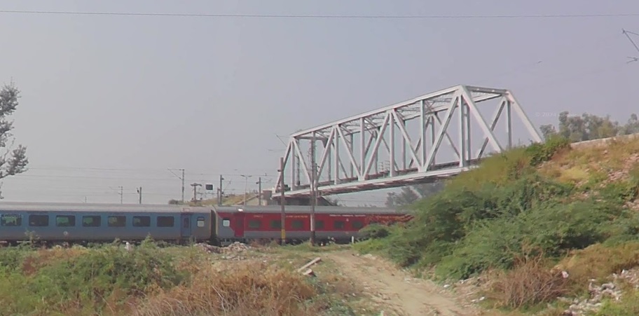 Just to the North of Panipat Junction Railway Station a double-track line curves away to the West. Our journey continues due North parallel to the Jammu-Delhi Toll Road.