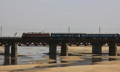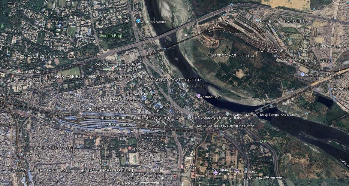 South West of Yamuna Bridge Railway Station a series of bridges cross the River Yamuna.