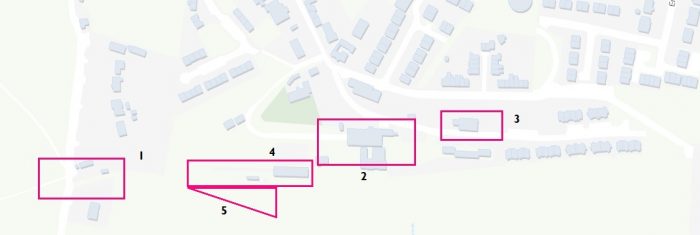 And finally at this location: a monochrome image looking in a westerly direction. The sidings West of the crossing can be picked out. The abandoned longer Extension climbed the hill behind the excavator alongside the road and passed this side of the church. [15] In the image below, the line of the railway through the village has been replaced by tarmac. The bridge shown on the sketch plan of the site seems to have disappeared. The church seems to have received a lick of paint.