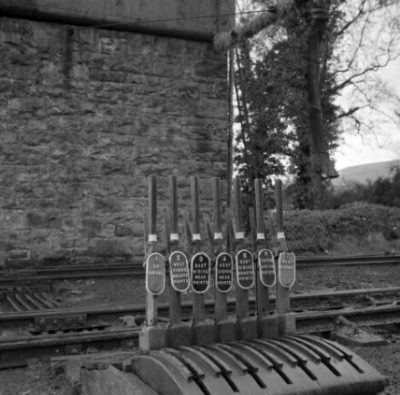 A little farther on, the terminus was entered to the left and at a gradient of 1:82. The site apparently in 1972, still bore the name ‘the Coke Yard’, being the place where the old Arigna company had a row of nine coke-ovens, all of which have long since gone. At 4 miles 12 chains a set of facing points gave access to a loop which veered off to the left. It was for engine run-round and at the far end there was a water-tank fed from a stream up the hillside. Meanwhile, the ‘main line’ had opened into a fan of three sidings, the left-hand one of which ran alongside a low stone-faced loading bank. In addition, there was a trailing shunting neck on an embankment which permitted gravity feeding of wagons into the sidings. [11]