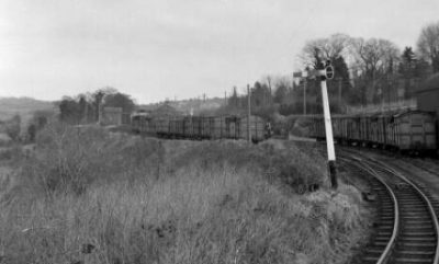 The road and railway swept round to the West following the valley side. The line was by now approaching the 400ft contour line on the 1940s OS Map.