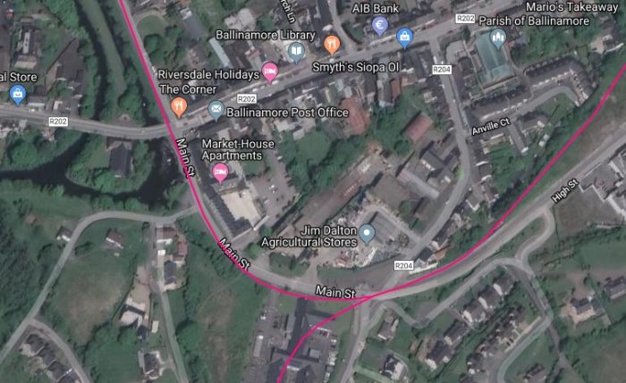 The old line ran between the Arigna River and the highway up to Derreennavoggy village. [17]