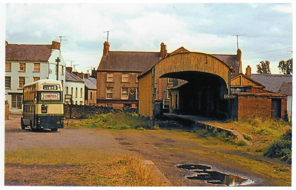 The small shed at Bushmills was used by the morning tram from the village which left, with a load of school children and others, to journey into Portrush before the main service started from the depot The winter service was extremely meagre and did not continue beyond Bushmills out to the Causeway unless three or more passengers booked through to that point. During the summer peaks five sets (of one motor car and two trailers) were often in operation at one time.” [1: p187-188]