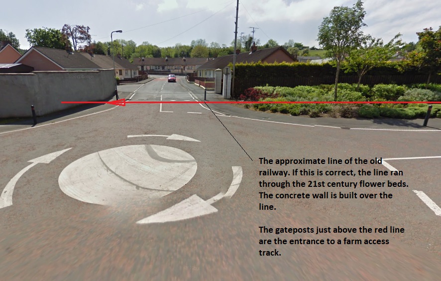 The Portrush terminus was outside the N.C.C. (formerly B. & N.C.R.) station and consisted of a run-round loop and lay-by siding in Eglinton Street. At one time there was a short branch which diverged just beyond the loop and ran down to the Harbour, but this was taken up about 1893.” [1: p185-186]