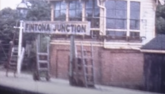 From Bushmills the line was completely private right-of-way and negotiated cuttings and embankments of railway proportions. After passing a loop, the Bushfoot Golf Links request halt was reached. Soon after this, the line crossed the Bush river by the impressive Victoria Jubilee Bridge, a three-span structure so named because it was erected in 1887.” [1: p187]