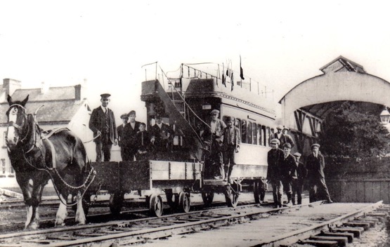 Wikipedia expands somewhat on the rolling-stock record provided by Evans: “the original cars were built by the Midland Railway Carriage and Wagon Company and were later followed by 5 examples from GEC, each with 2 x 20 horsepower (15 kW) British Thomson-Houston motors, and also a Peckham car. There were a maximum of six electric power cars owned at any one time, all being single-truck, single-deck vehicles with both enclosed and “toast rack” examples; typically these would haul several 4-wheel “toast rack” trailers, of which there were 15. There were four steam tram engines, ordered from Wilkinson of Wigan. They had vertical boilers, weighed 7 tons and burnt coke. No.2 was scrapped in 1899, No.1 converted to a ballast wagon in 1910 and Nos. 3 (Dunluce Castle) and 4 (Brian Boroihme) were sold in 1930 for the River Bann Navigation works near Portstewart.” [3][11]