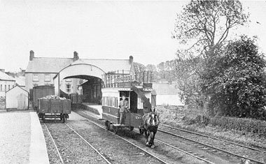 “At one side of the station yard is a small tram shed with accommodation for two cars. The line to the car shed is of interest in that it was to have formed the beginning of an extension to Dervock on the 3ft. gauge Ballycastle Railway. It was with a view to through running with the latter railway that the narrow gauge was adopted for the electric line. The owners wisely decided that an extension to the Causeway would probably be more remunerative.