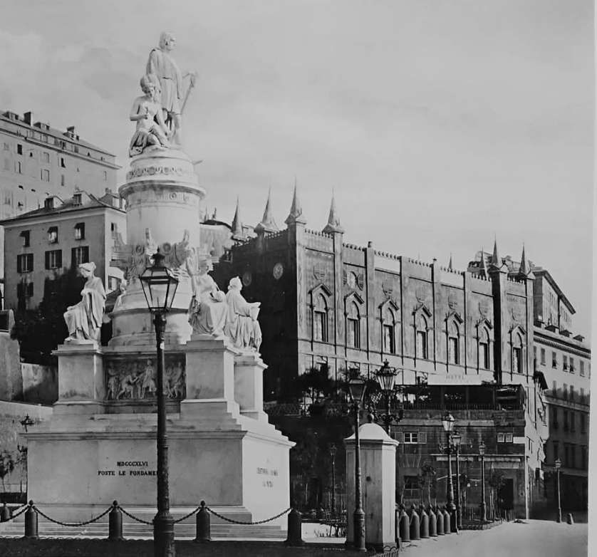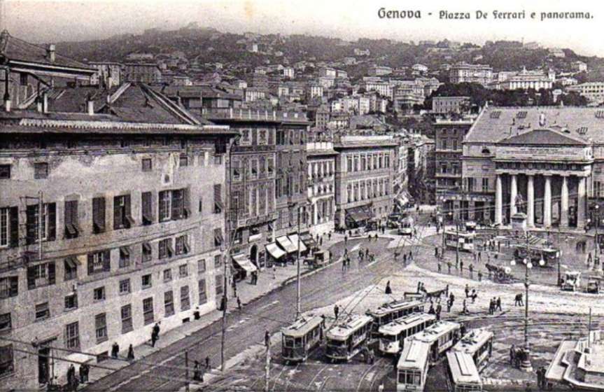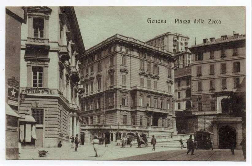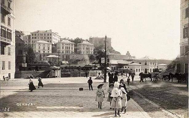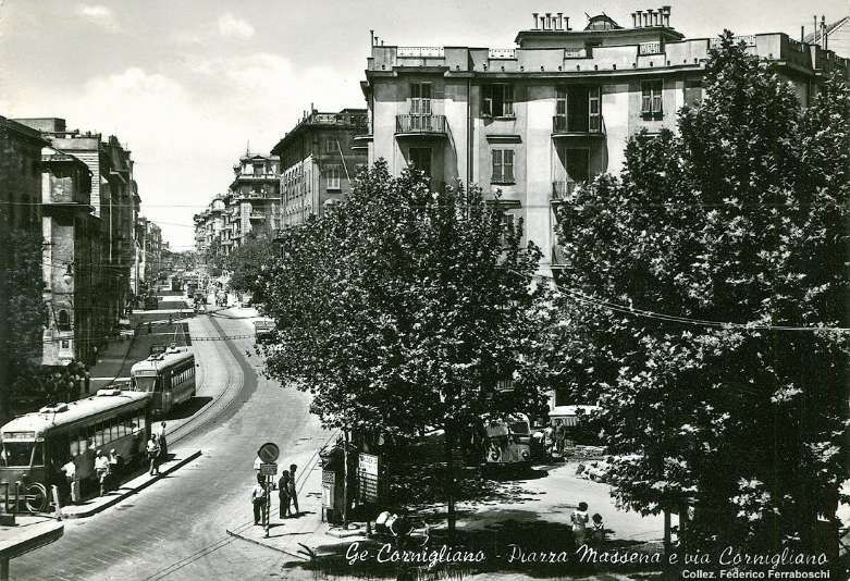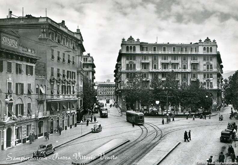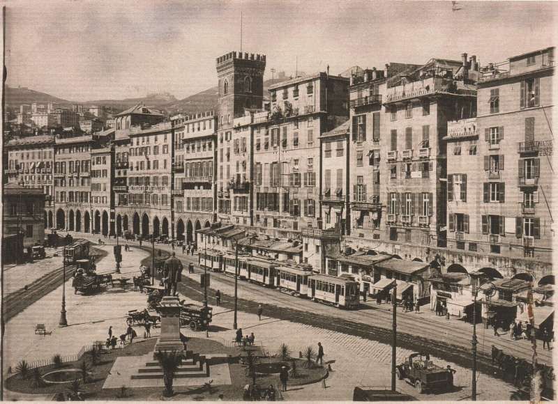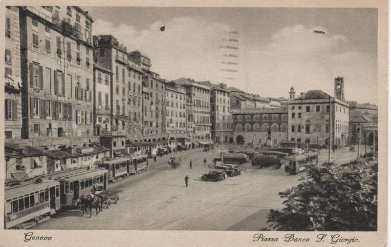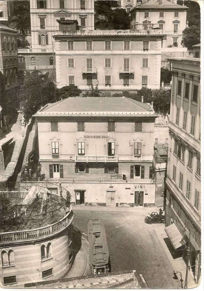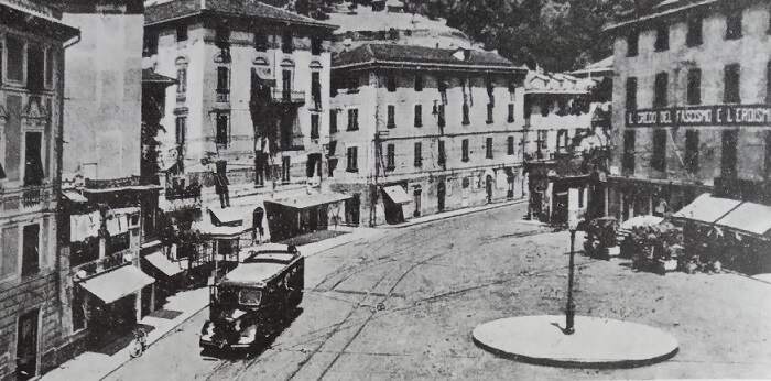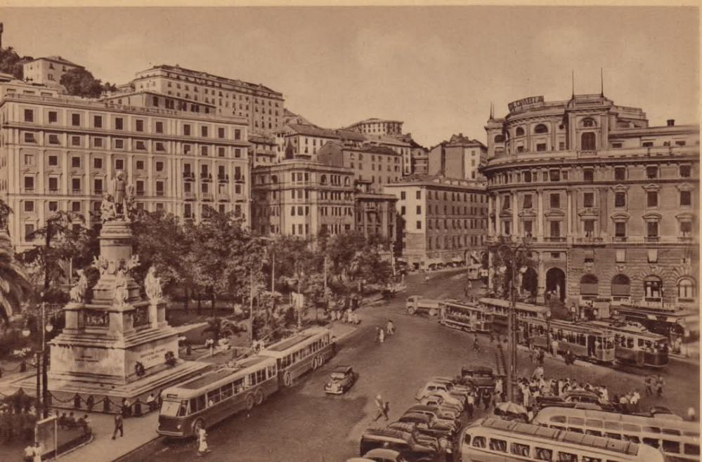 The monochrome image below purports to show Piazza San Marino. As far as I can work out the piazza was historically, ‘Piazza Vittorio Emanuele III’ and later renamed for another partisan from World War 2 – ‘Piazza Ricardo Masnata’.