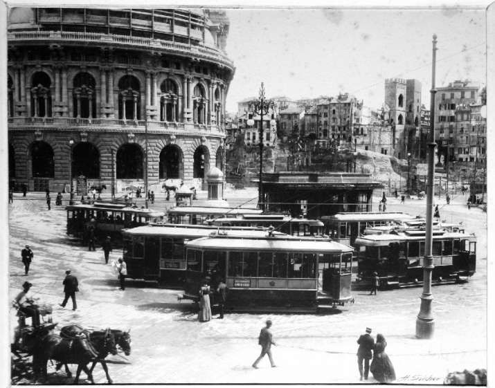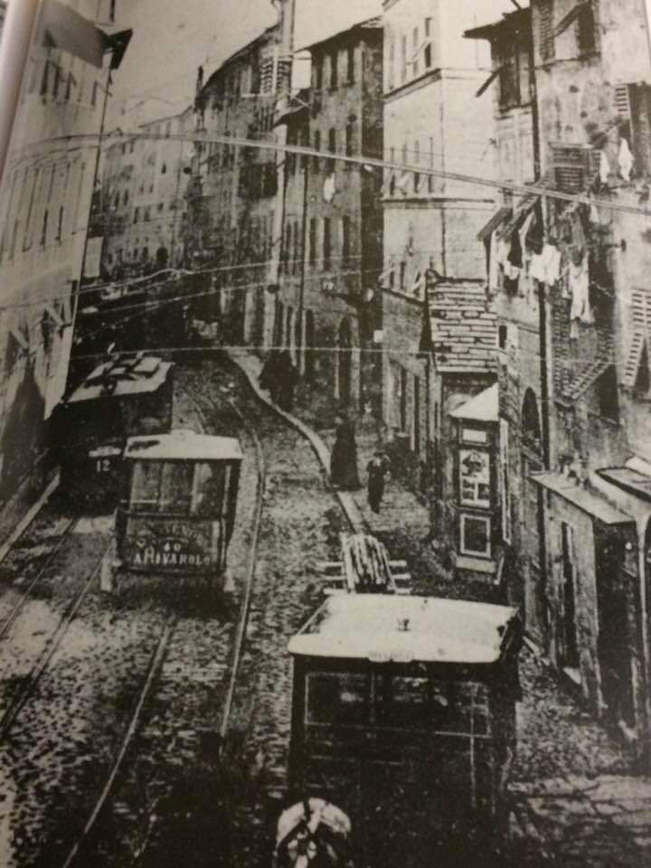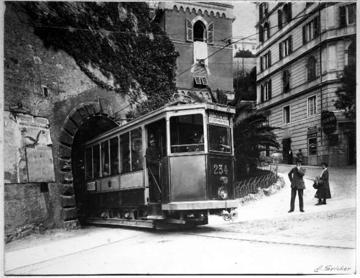 Italian Wikipedia informs us that: “The first public transport in Genoa was provided by a horse bus service linking the city centre and Sampierdarena, that started in 1873. In 1878, the French company Compagnia Generale Francese de Tramways (CGFT, French General Company of Tramways) began to build a horse tram system.” [16][17]