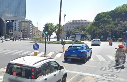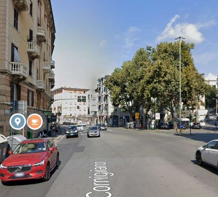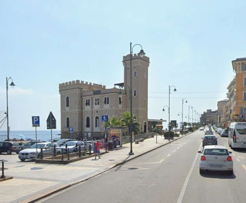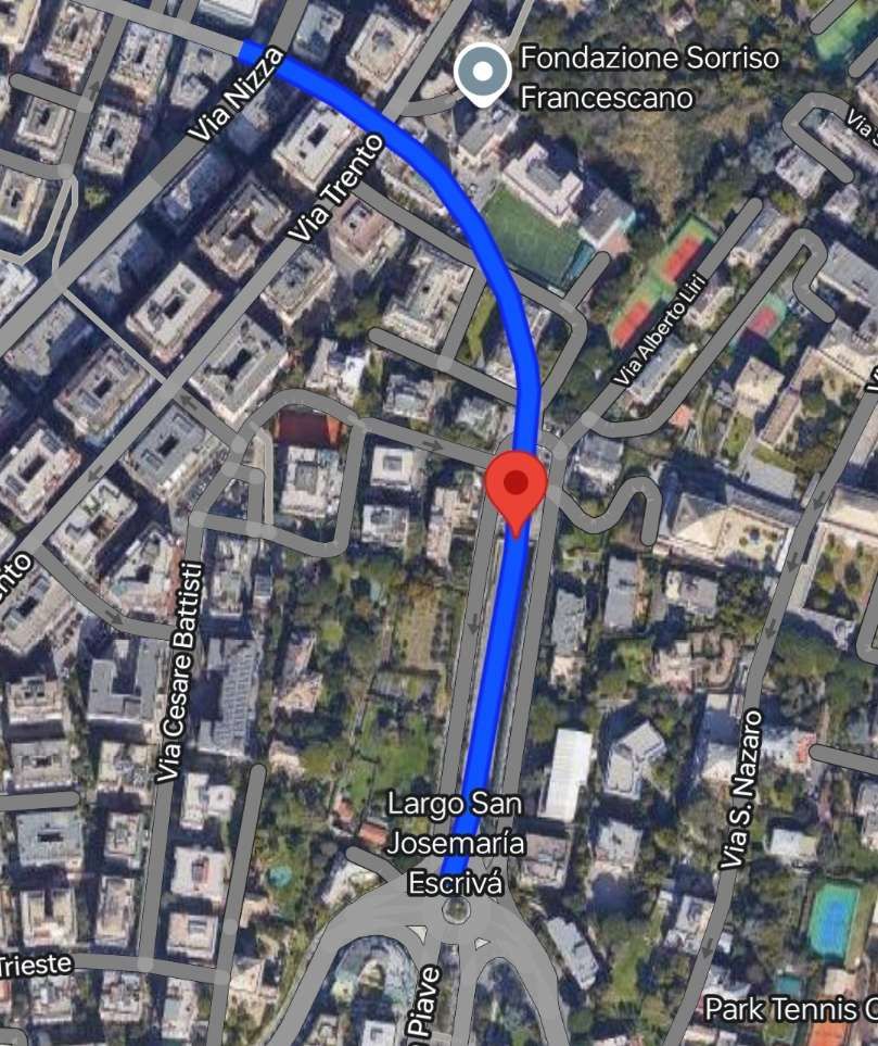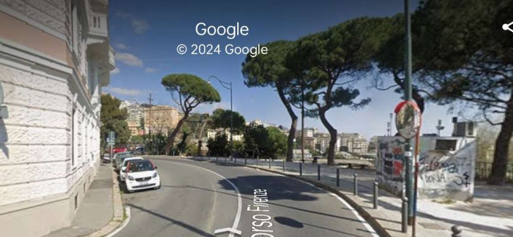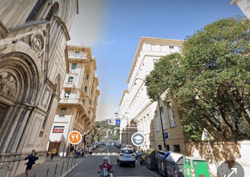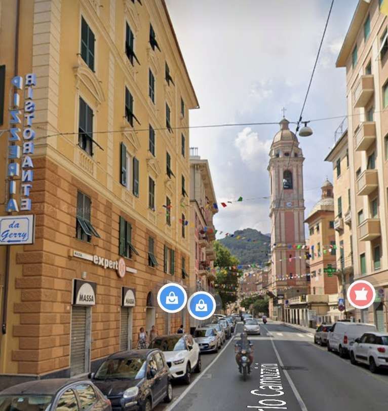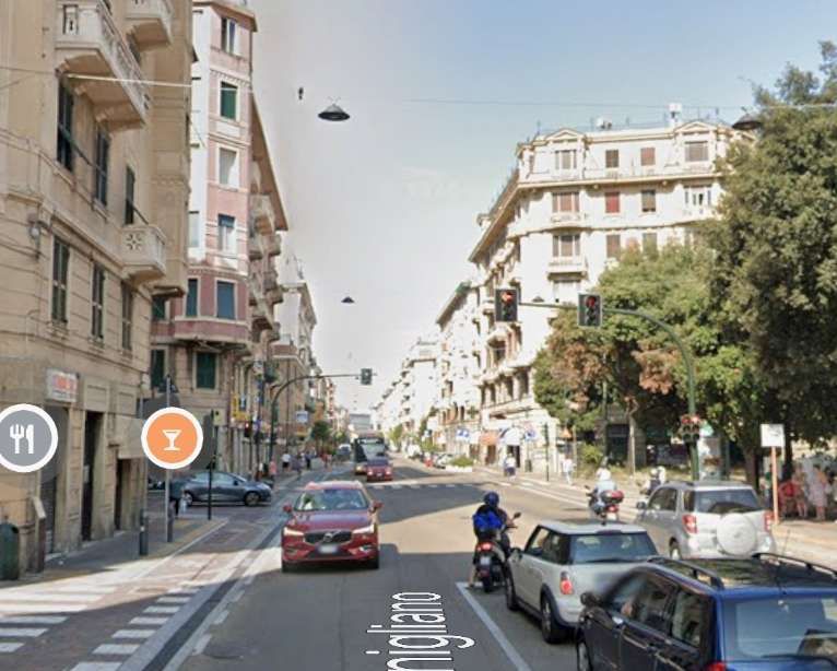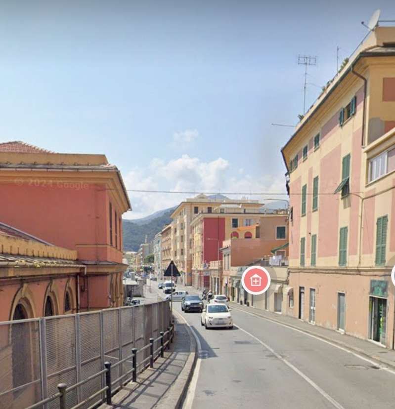A relatively low quality image of Piazza San Marino and Via Umberto 1. The piazza later became Piazza Ricardo Masnata. This view looks North with a tram visible on the left, (c) Public Domain. [64]Piazza Ricardo Masnata, looking North. There is little to link this image from 2024 with the monochrome image above, other than the alignment of the roads and the shape of the piazza. However, at the centre of this image is a lower building which also appears in the monochrome image. [Google Streetview, August 2024]Via Umberto 1 looking North from what became Piazza Ricardo Masnata, (c) Public Domain. [67]The same location in the 21st century. [GVia Umberto 1, now Via Walter Fillak with a tram heading towards Genoa. [69]The same location on Via Walter Fillak in the 21st century. [Google Streetview, August 2024]