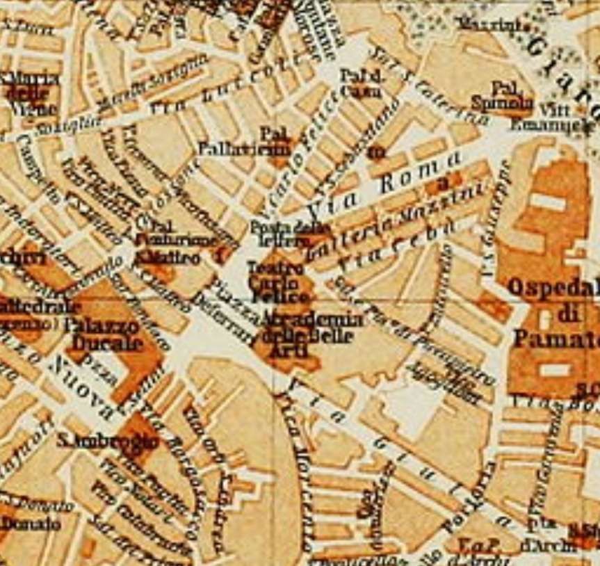 We begin this article with a look at maps of the Piazza Raffeale de Ferrari and its immediate environs over the years around the turn of the 20th century. The Piazza became one of two focal points for tramways in the city (the other was Caricamento).