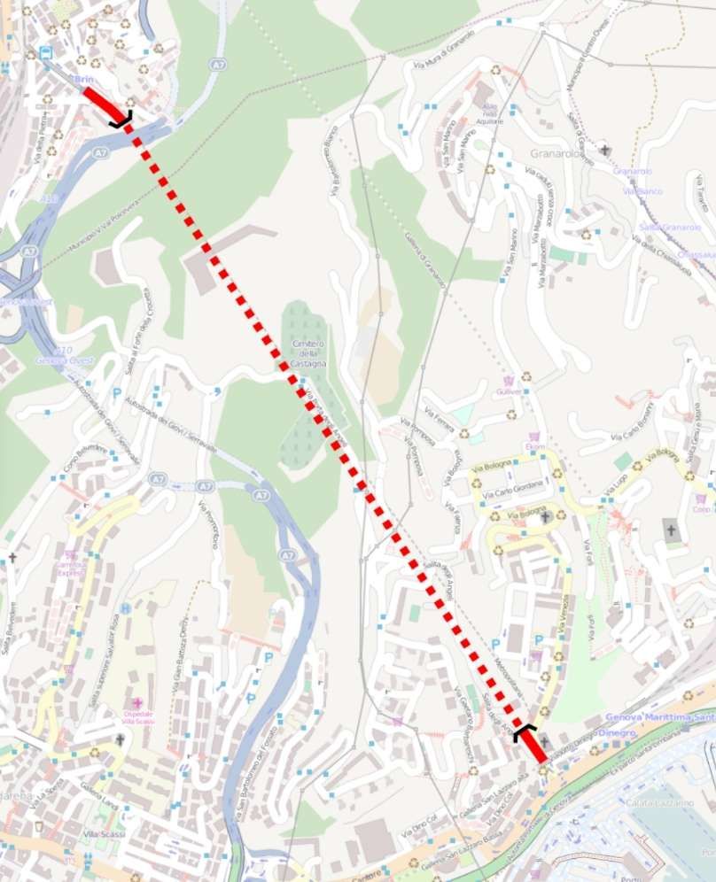 “Starting from the terminus at Manin, the route winds its way out of the city: running along a stretch of the Val Bisagno, it serves the localities of S. Pantaleo, Cappuccio, Campi, Pino Soprano, Torrazza, before passing through the Trensasco tunnel into Val Polcevera and reaching the terminus at Casella, in Valle Scrivia.” [4: p16 – translated/adapted from Itailan]