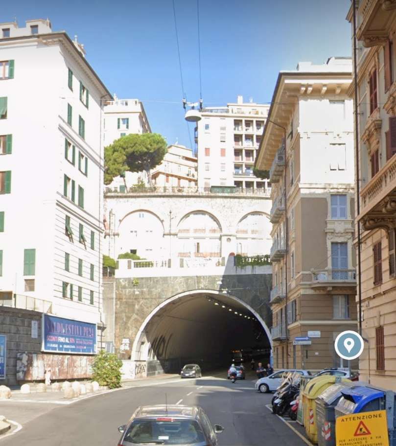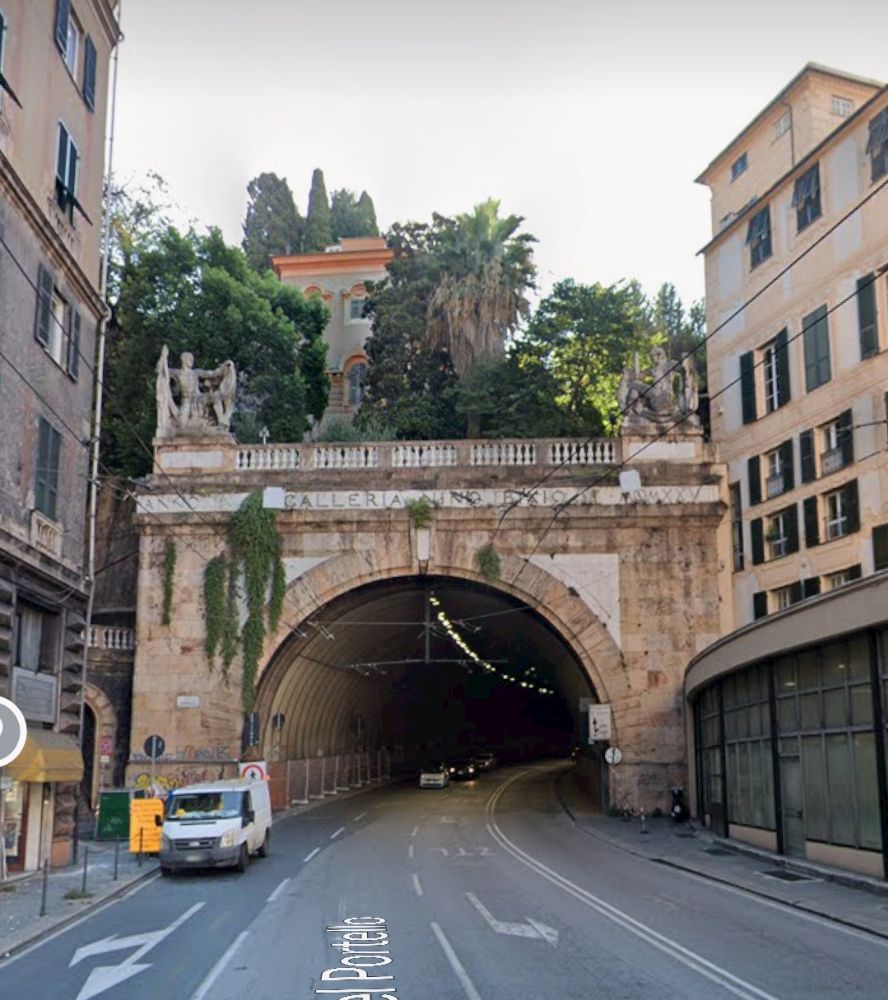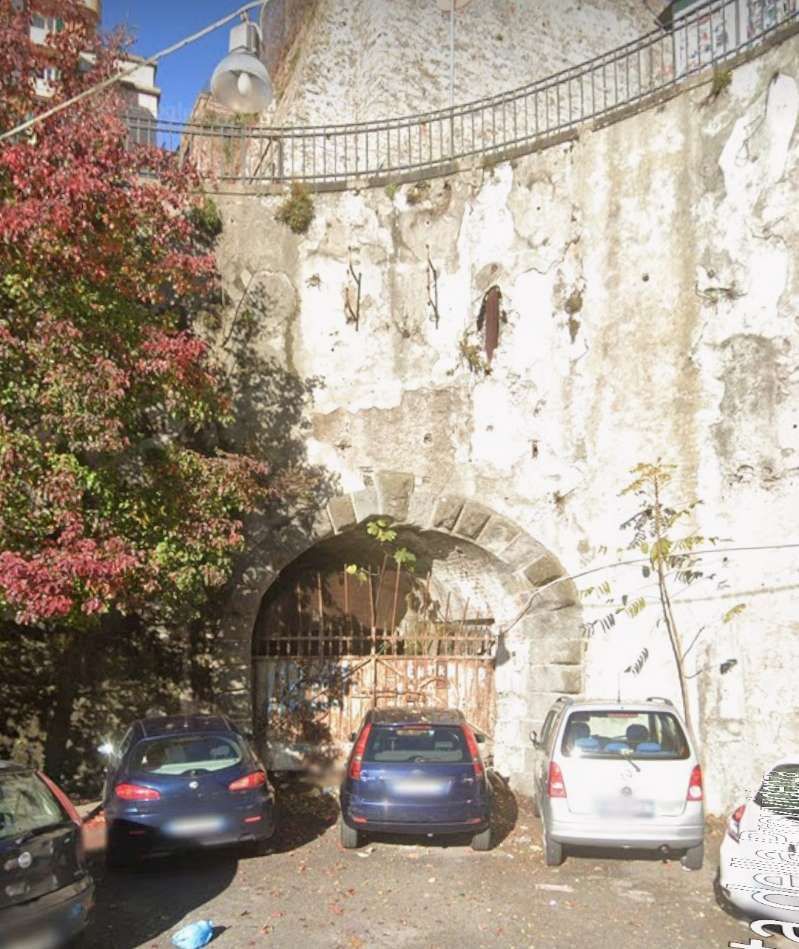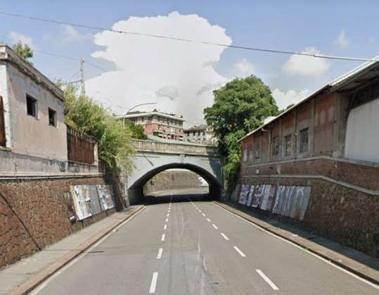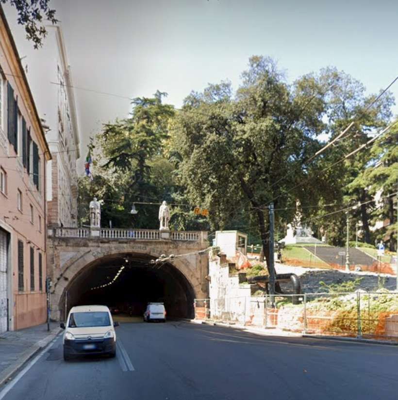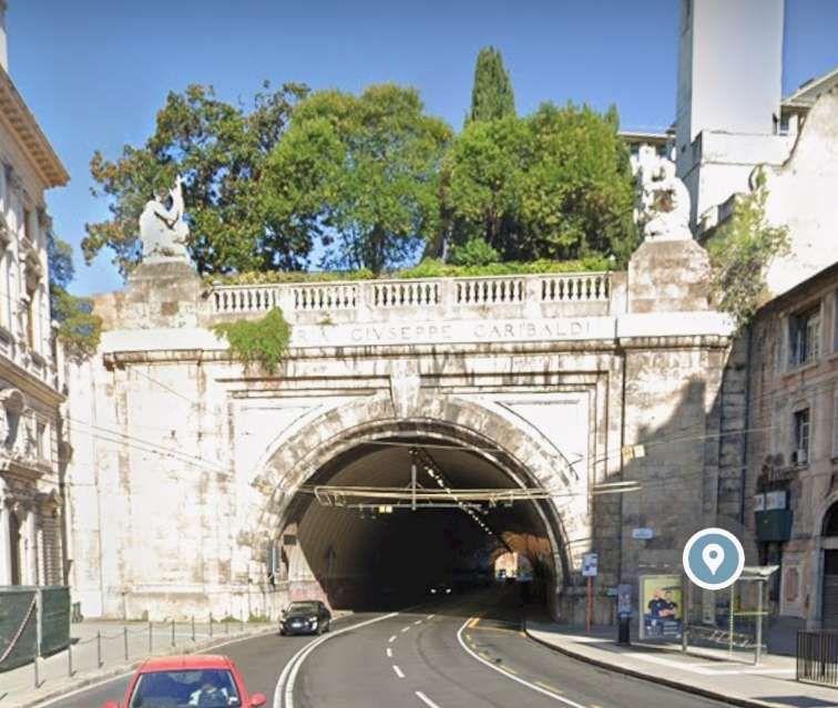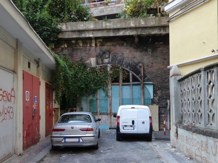 Now long gone, there was a tram tunnel on Via Milano to the Southwest of the city centre. It took the tramway (and roadway) under San Benigno Hill. It was.built in 1878 by the Compagnia Generale Francese dei Tramways for its horse-drawn trams. Its Southwest portal was in Largo Laterna. Its Northeast portal is shown in the first image below.