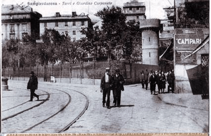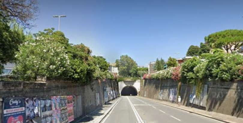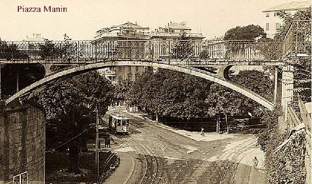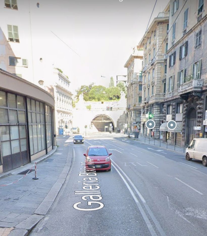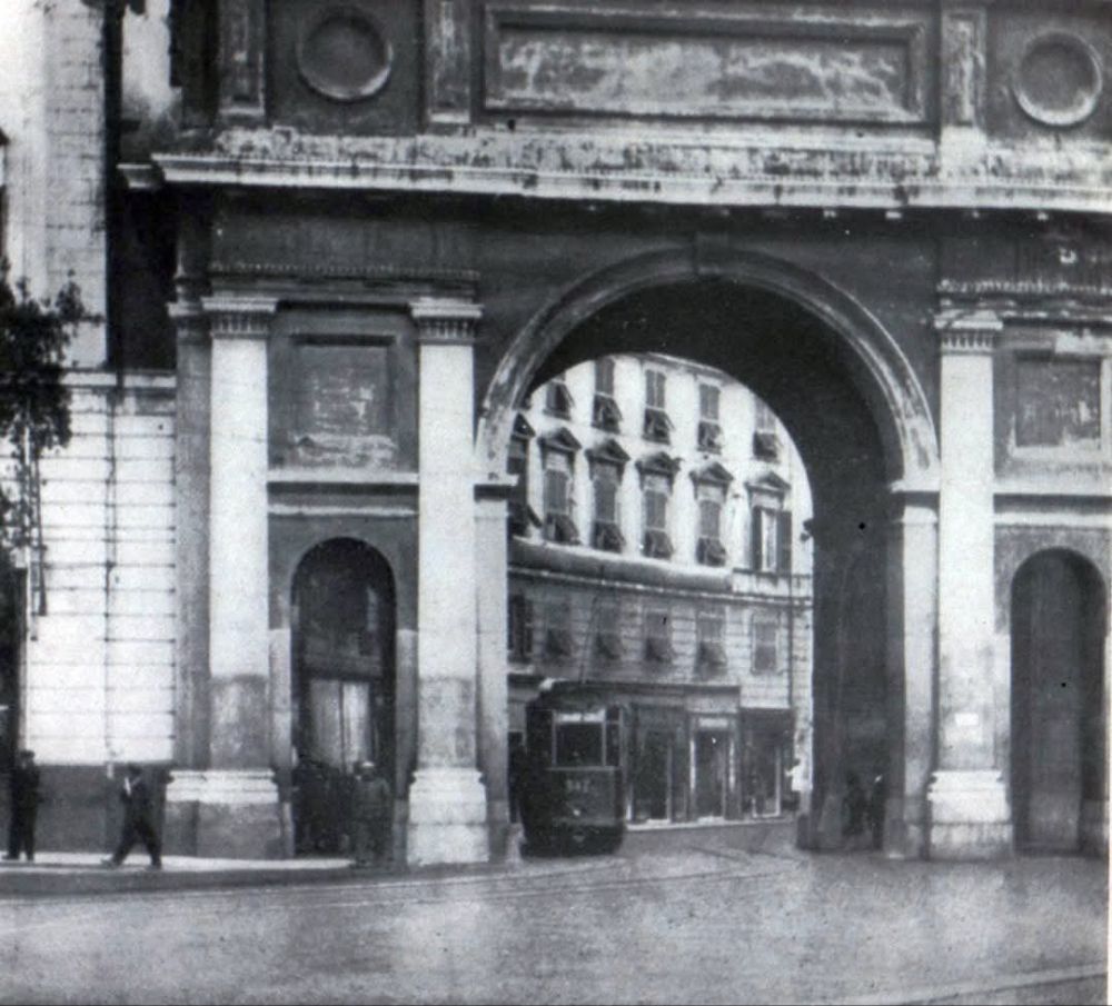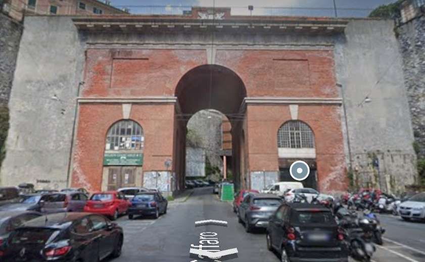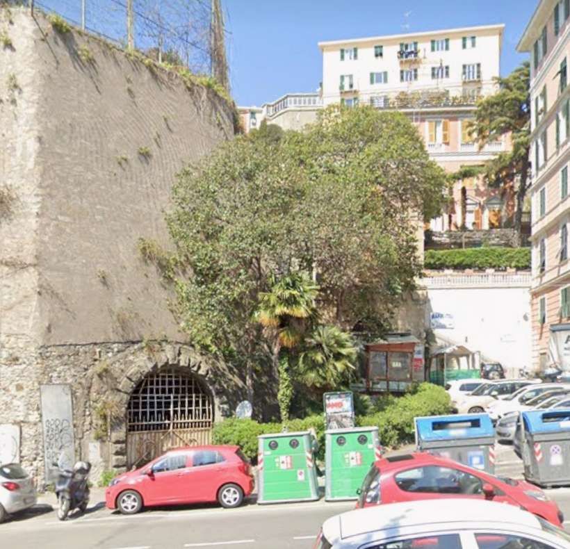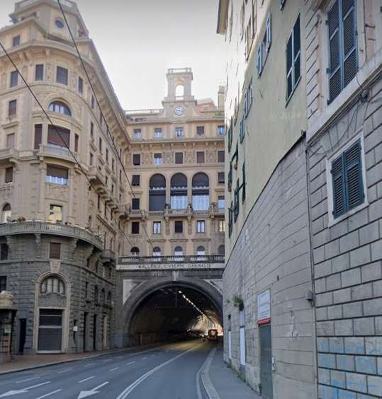 Now long gone, there was a tram tunnel on Via Milano to the Southwest of the city centre. It took the tramway (and roadway) under San Benigno Hill. It was.built in 1878 by the Compagnia Generale Francese dei Tramways for its horse-drawn trams. Its Southwest portal was in Largo Laterna. Its Northeast portal is shown in the first image below.
