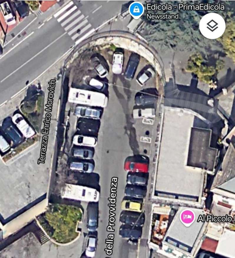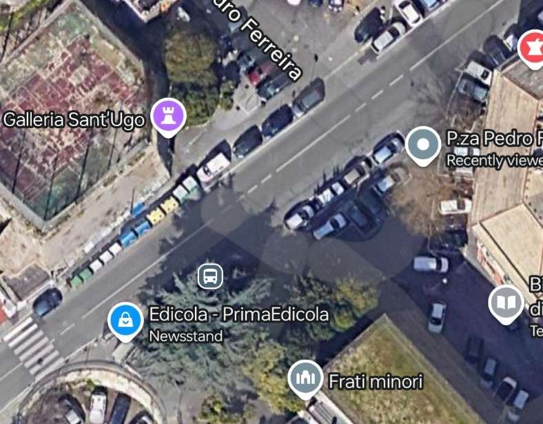 The adjacent Google satellite image shows roads over which the old tramway ran. In the bottom right is Piazza Nicolo Montano. It is also possible to make out the station approach ramp which has a number of cars parked on it. In the immediate vicinity of the passenger railway station, railway buildings can be seen separating Via Paolo Reti from the railway but very soon the road and the railway run side-by-side with the railway perhaps 2 to 3 metres above the road. Via Eustachio Degola passes under the railway just to the North of the station buildings. Towards the top of the satellite image, Via Paolo Reti can be seen turning away from the railway wall. [Google Maps, December 2024]