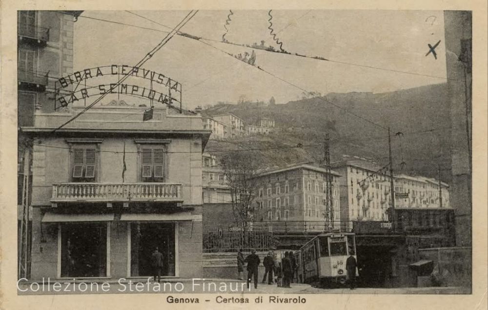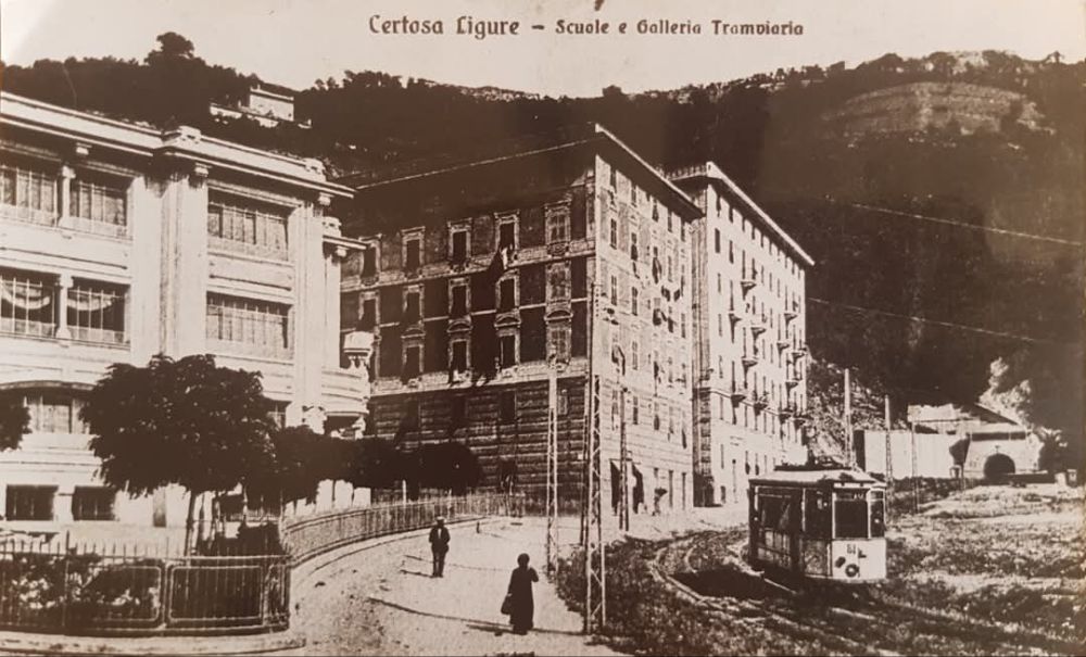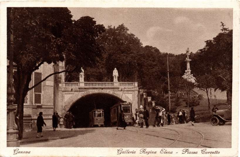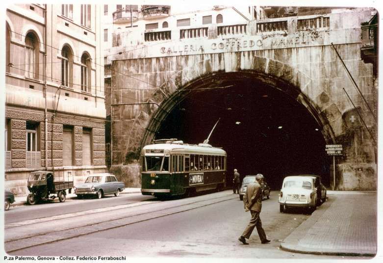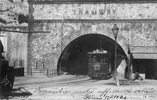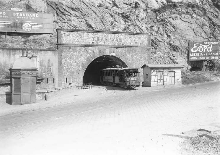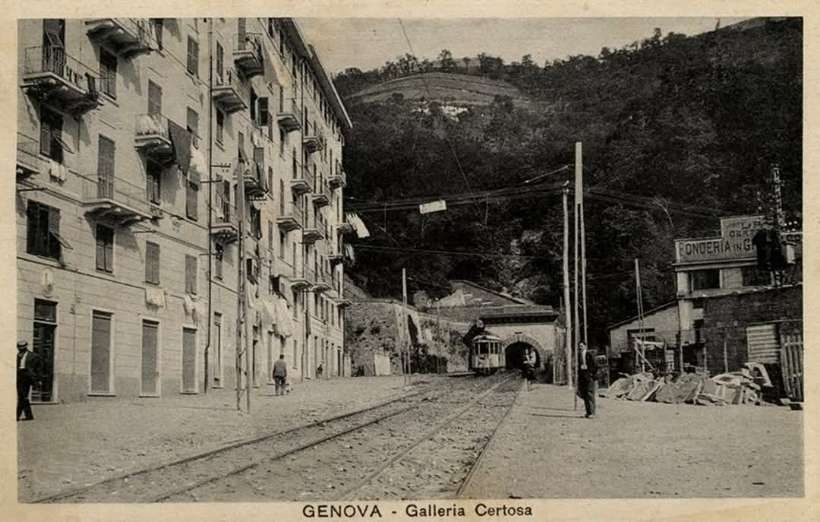 In 1908, after three years of construction work, Galleria Certosa (Certosa Tunnel) was put into use. It facilitated tram journeys to and from the Polcevera valley, avoiding the crossing of San Pier d’Arena. [19][21: p38] The tunnel connected Piazza Dinegro, in the port area, to the Rivarolo district in Val Polcevera. It was 1.76 km long. [22]