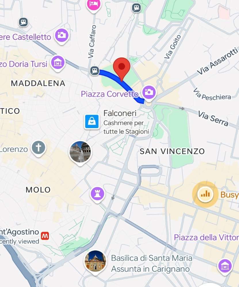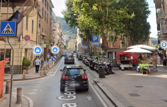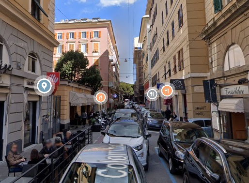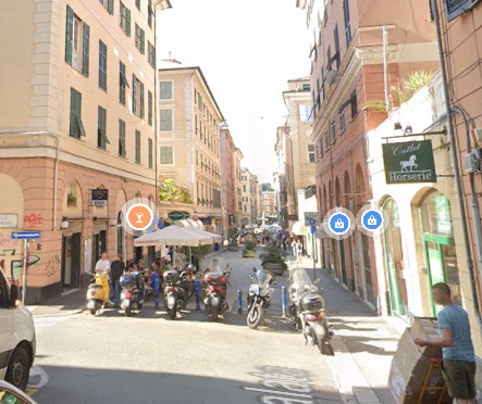 This image from the early 20th century looks North along Via Celesia. Space on the street was clearly at a premium! [80]Via Celesia in the 21st century. [Google Streetview, August 2024]