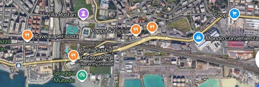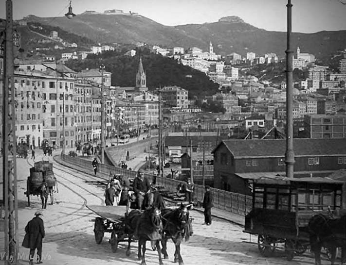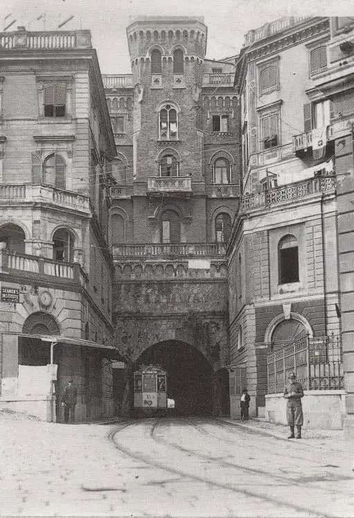 The route to San Pier d’Arena (Sampierdarena) closely follows the coast and ran through the Galleria on Via Milano before the San Benigno Hill was raised to the ground.