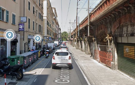 North of Via Celesia, the tramway ran along Via Rivarolo.
