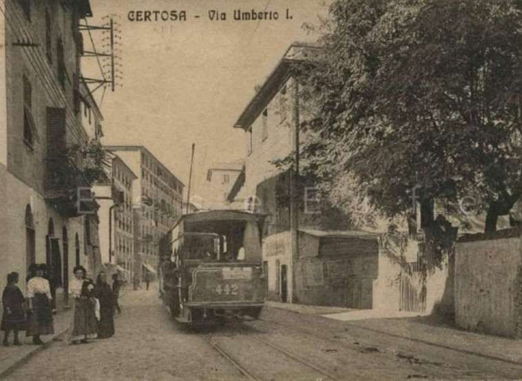 In 1934, Galleria Certosa was used every day by five lines: Tram No. 9 (San Giorgio-Rivarolo), tram No. 10 (San Giorgio-Bolzaneto), tram No. 11 (San Giorgio-Pontedecimo) and the two circular lines between San Giorgio and Sampierdarena. [22]