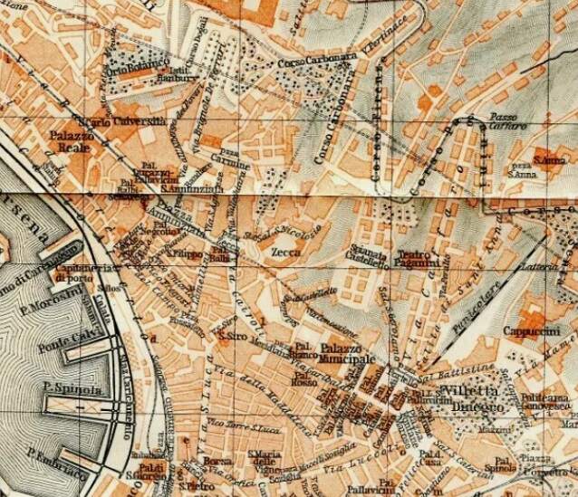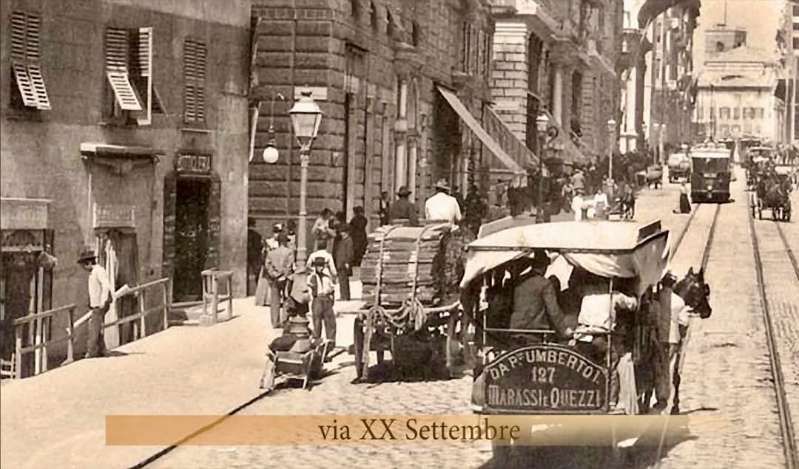 Via XX Settembre, built between 1892 and 1899, widening Strada Giulia and connecting the Palazzo Ducale (Piazza de Ferrari) with Porta Pila and the banks of the River Bisagno (once the eastern boundary of the city);