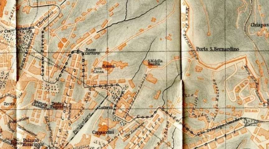In the 19th century the route was known as ‘Via Vittorio Emanuele’. In the early years of the 20th century the road was renamed ‘Via Umberto 1’. In 1935, the city gave the road the name ‘Via Milite Ignoto’ (the Unknown Soldier). This decision appears to have been short-live as very soon the road was divided into two lengths, the more southerly length becoming ‘Via Martiri Fascisti’, the remaining length, ‘Via delle Corporazioni’. After the end of Word War Two renaming again occurred. In 1945 the names which continue to be used in the 21st century were chosen – ‘Via Paolo Reti’ and ‘Via Walter Fillak ‘. Fillak and Reti were partisans in WW2. [59][66]