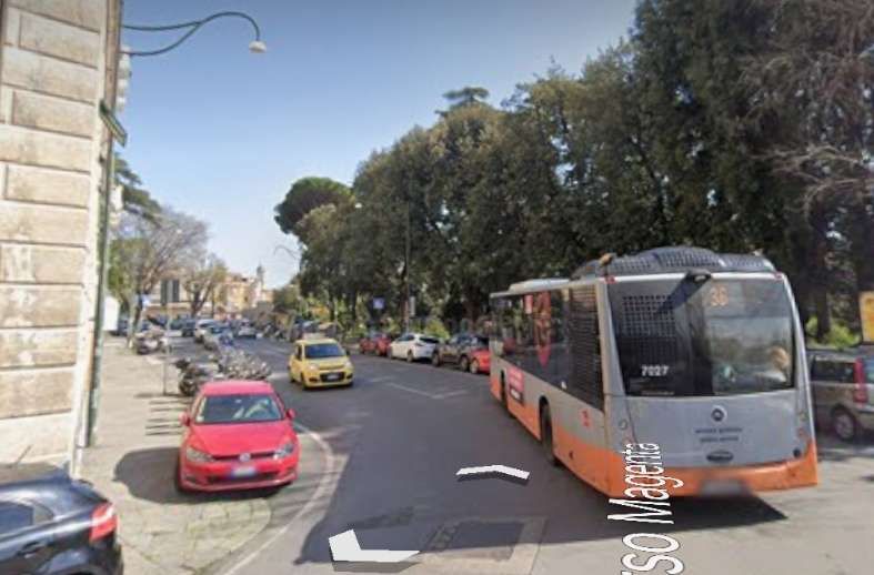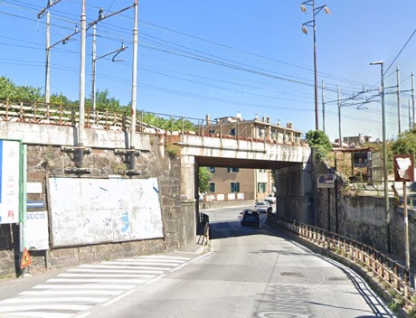 Close to Ex-Chiesa di San Pantaleo the Via San Pantaleo passes under the railway. Google Maps, November 2024]The stone-arched underpass which takes Via San Pantaleo under the railway, Luca Spinelli (2018). [Google Maps, November 2024]