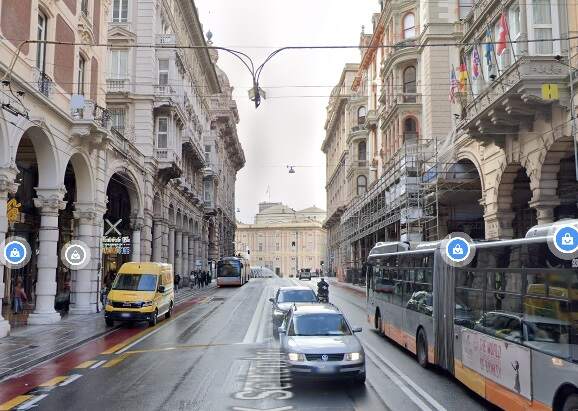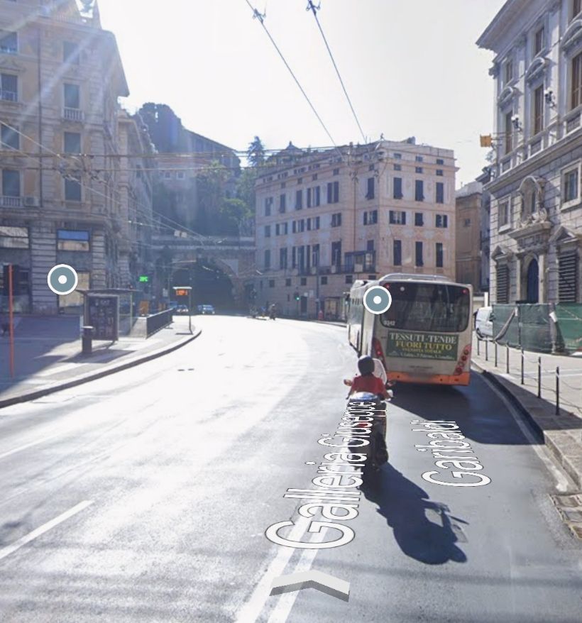 West of the Galleria, the original tramway ran along what is now Via Giacomo Buranello (what was Via Vittorio Emanuele) to Sampierdarena. This route appears to the North of the SS1 on the satellite image below.