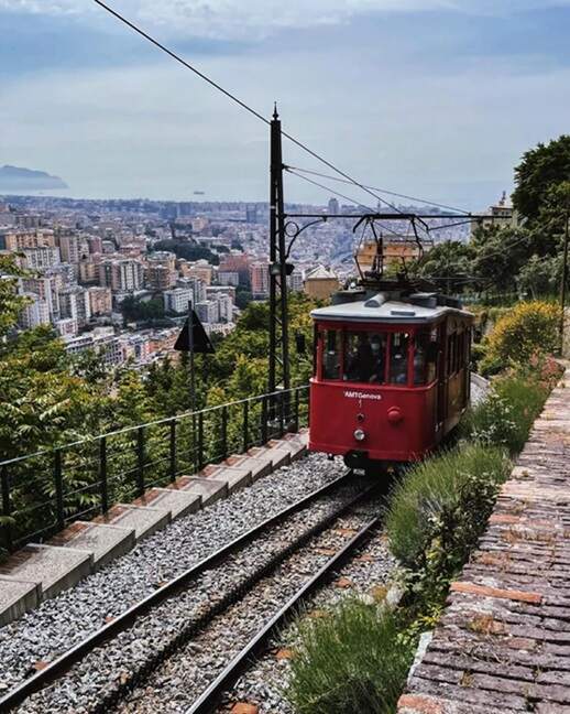 Barry Cross says that “as far as tramway enthusiasts are concerned, the city lost most of its attractions in the 1960s, when the remaining interurban tram routes were abandoned, and public transport became synonymous with travelling by diesel bus. … Nevertheless, the curious topography of the city, which to all intents and purposes is built on a narrow coastal enclave, has meant that some rather curious forms of public transport have survived. Flying the tramway flag during the lean years has been the Granarolo rack tramway, whose two cars resemble both tramway and funicular vehicles. … Then there are the two conventional funiculars: the Sant’Anna and Zecca-Righi, which provide rapid access from the port to the residential districts in the hills above. Finally, the Genova-Casella electric light railway offers one of the most scenic and exhilarating rides to be found anywhere on the European continent.” [1: p251]
