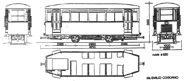 Also from Val di Fiemme came six bogie-carriages, two longer coaches numbered C101 and C102 and four of shorter carriages, numbered from C103 to C106. [1]
