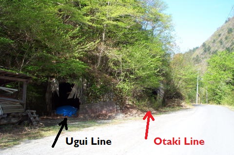 The next station along the line was at Ohshika, where a line branched off the line that we have been following and followed the valley of the Uguigawa River. It seems that although the Ohtaki line closed in 1975, it was still possible to follow the branch-line in 1977. [2] The adjacent map shows the line.