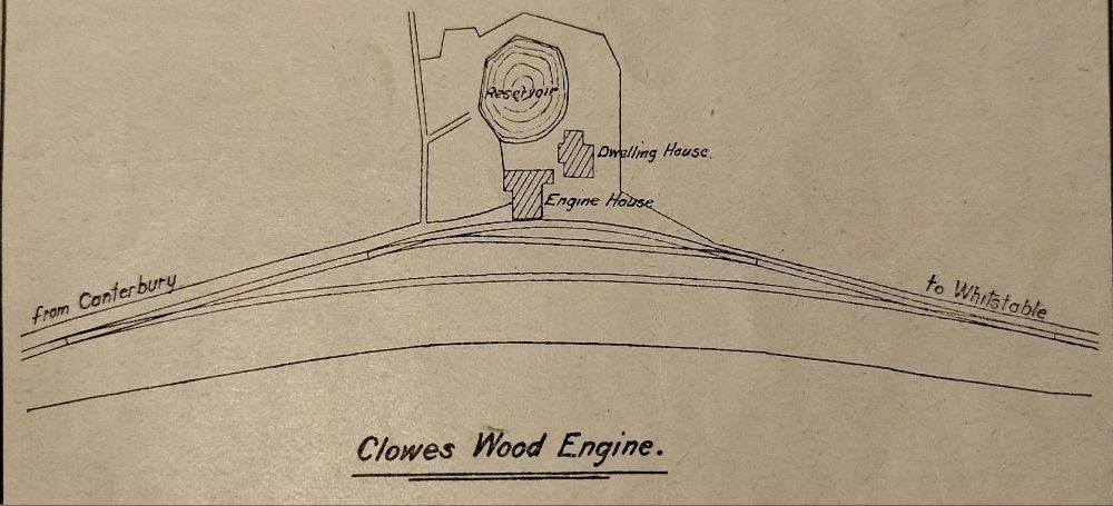 “At the top of the steep bank from Canterbury there stood two 25 h.p. stationary engines for winding the trains up the incline. From where the first engine house stood the line is straight and practically level for the next mile to Clowes Wood summit, where there were two fixed engines of the same type and h.p. as those at the previous stage. The line then descends at 1 in 28 and 1 in 31 for the next mile to a place called Bogshole, so named owing to the once spongy condition of the ground in the vicinity, which was a constant source of trouble during the early days of the railway, as whenever wet weather set in the track invariably subsided with sometimes consequent cessations of traffic for a whole day, and even longer. At Bogshole commences the South Street level, which continues for a mile to the top of Church Street bank, whence the line again falls for half a mile at 1 in 57, the remaining half mile to Whitstable being almost at level.” [1: p310]