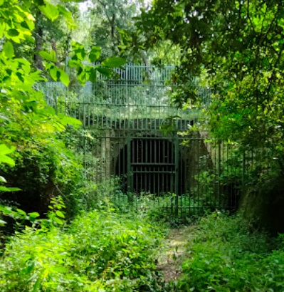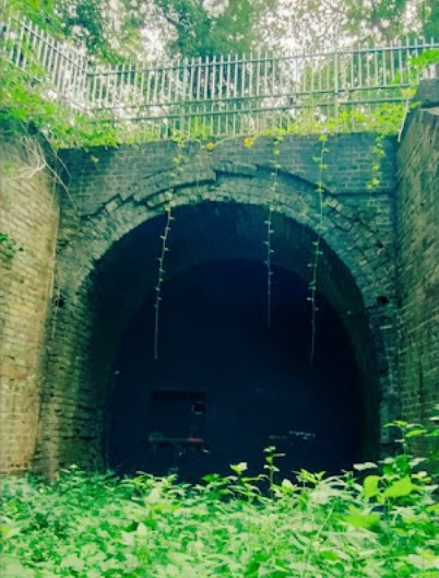 Two photographs below show North Portal as it is in the 21st century. It is fenced and gated for safety and security purposes. The first shows the spalling brickwork of the tunnel ring, and the boarding-off of the entrance provided with an access gate. for maintenance purposes. Both were shared on Google Maps.