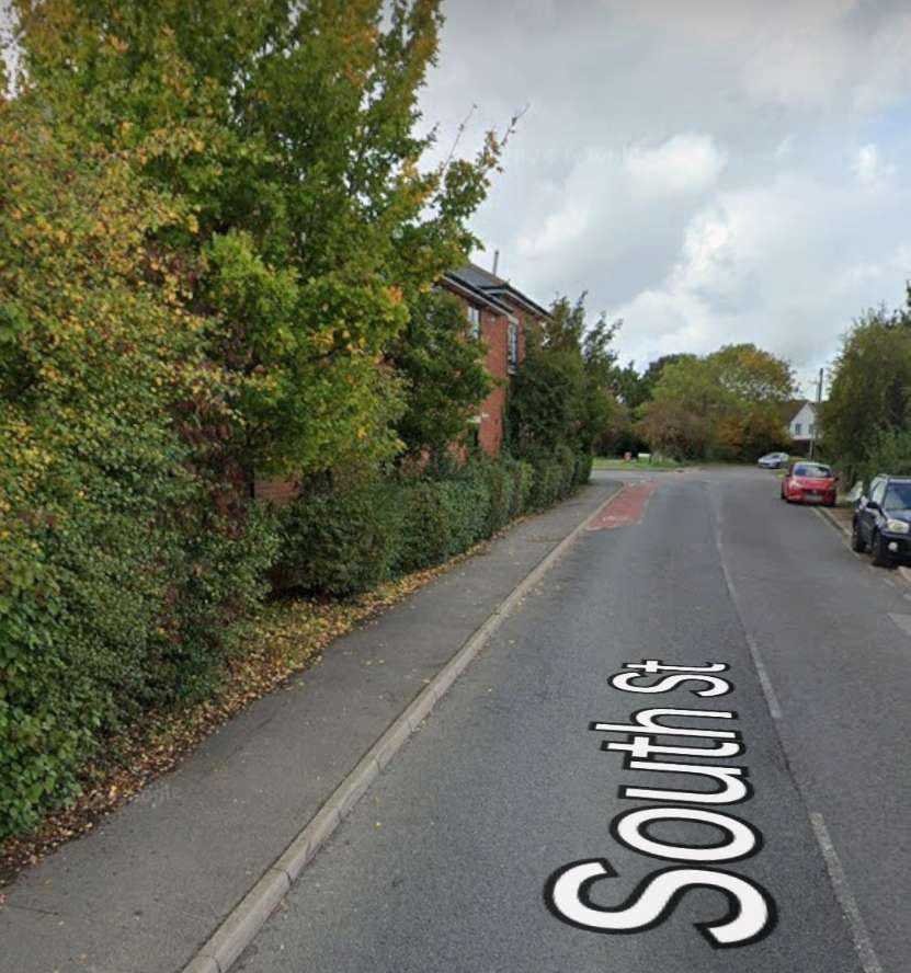 The old railway route continues North and after passing through the rear gardens of houses on South Street runs, for a short distance immediately adjacent to South Street.