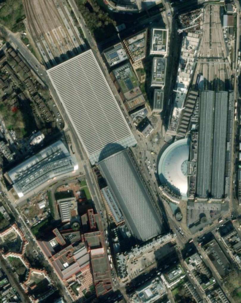 The depot closed in 1986, following the decision by Parcelforce, Royal Mail’s parcels division, to abandon rail transport in favour of road haulage. The tracks into Mayfield were removed in 1989, as part of the remodelling of the Piccadilly station layout. The parcels conveyor bridge was removed in 2003 with the Sorting Office being rebuilt as the Square One development, prestige offices used by Network Rail. [2]