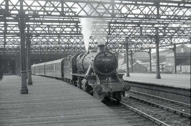 Manchester Mayfield 3rd September 1955. Longsight’s Stanier 2-6-0 42960 is ready to depart with a suburban service. Photo H C Casserley.