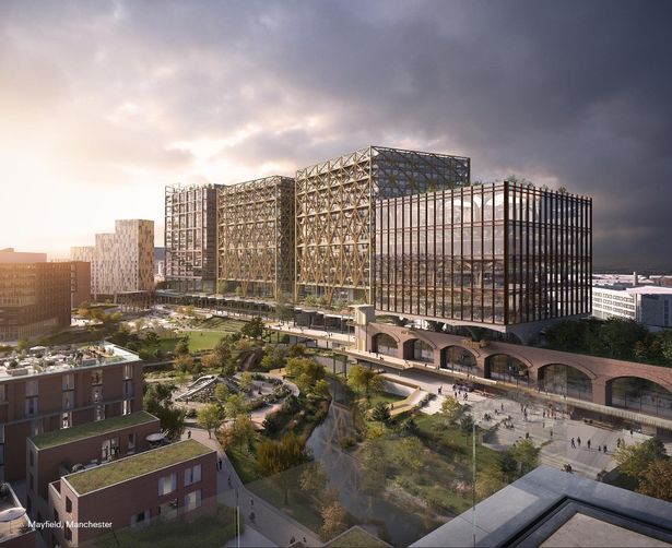 “Mayfield will facilitate transformational change at the eastern gateway of the city centre close to Piccadilly Station. The 20 acre site provides the opportunity to create a distinctive and unique city centre district. The vision for Mayfield is for a distinctive, world class development delivering significant new commercial space, and up to 1500 new homes alongside a mix of retail and leisure facilities all centred on a new 6.5 acre city centre park.” [19]