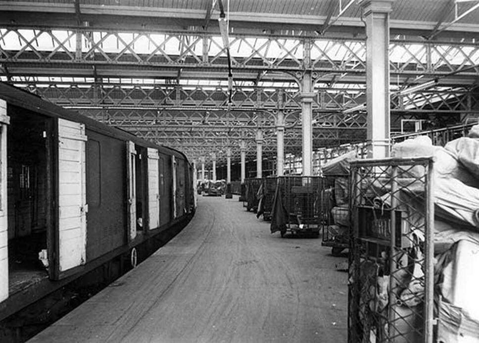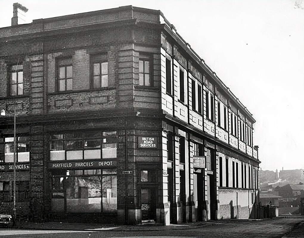 “The site was converted into a parcels depot, which opened on 6th July 1970. [4] Royal Mail constructed a sorting office on the opposite side of the main line and connected it to Mayfield with an overhead conveyor bridge, which crossed the throat of Piccadilly station.” [2]