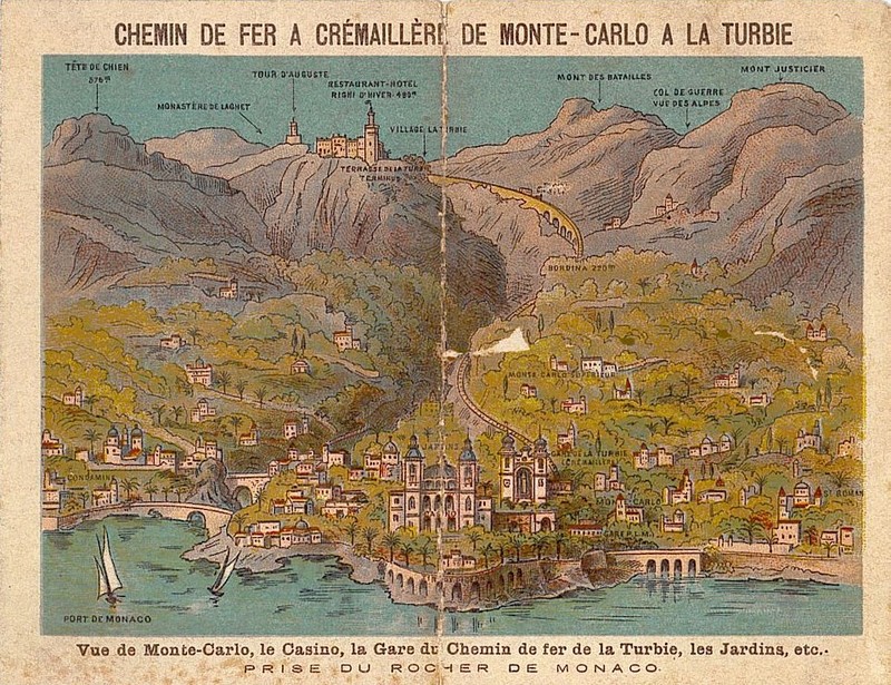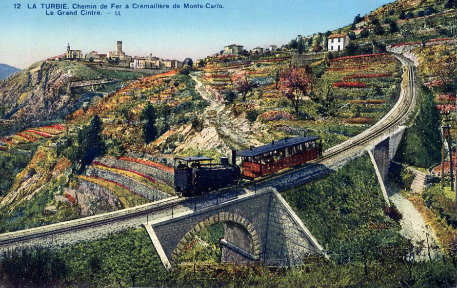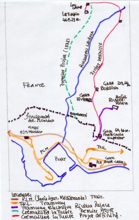 In 1893, a metre-gauge rack railway was constructed to connect Monaco with La Turbie, a medieval village perched on the hills above Monaco. There were a number of different schemes considered before the final version was agreed. These can be seen on the sketch plan which has been provided on http://cremallierturbie.canalblog.com%5B1%5D.