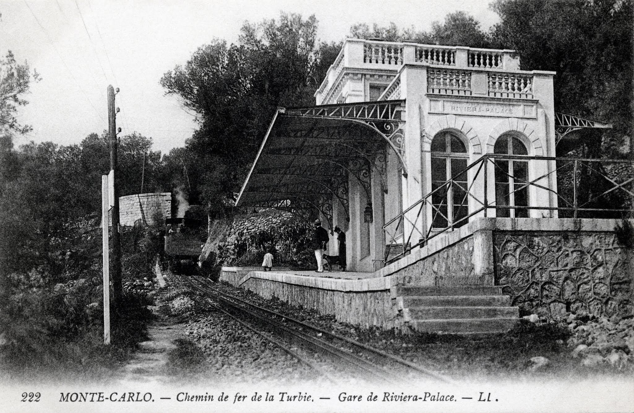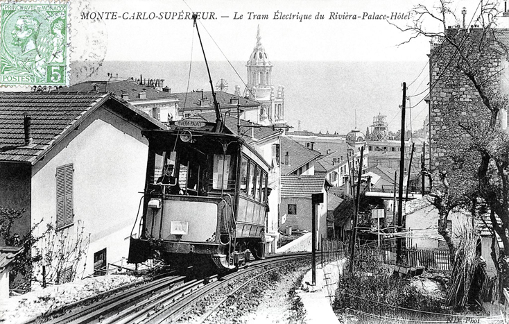 At the beginning of the 20th century an electric tram service connected the Rue des Iris in Monte-Carlo to the Riviera-Palace Hotel. The lifespan of the service was short – just 10 years from 1903 to 1913. The service became redundant as auto-bus and car usage rose in the period before the Great War. The Riviera-Palace Hotel and the tramway that served it are the subject of a book by Jean-Paul Bacscoul and Jean-Claude Volpi entitled: “Le Riviera Palace: 1897-1904, La Turbie, 1904-1936, Monte-Carlo Superieur- Beausoleil.”[12]