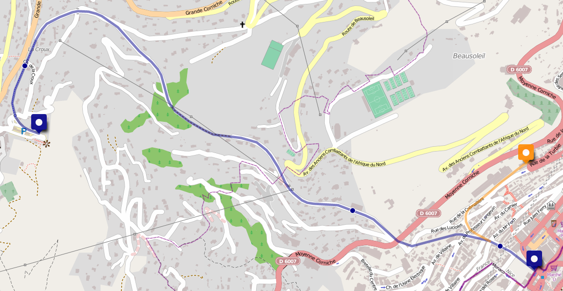 The final route is shown on the map below [2]. The line did not enter the Principality , it terminated on French soil in the suburb of Beausoleil.