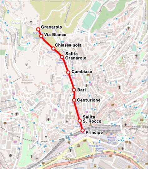The Principe–Granarolo rack railway (Ferrovia Principe-Granarolo) is a rack railway that connects Via del Lagaccio, near the Genoa Piazza Principe railway station, to the Granarolo hills. The line is sometimes erroneously described as a funicular.  The line is managed by AMT Genova, which manages the city’s public transport. [1]