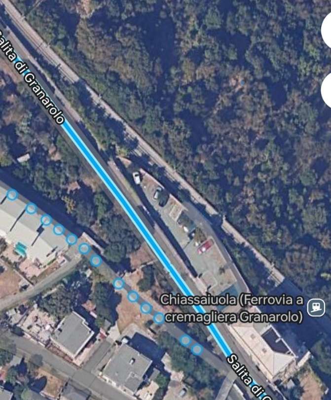 The route of Salita di Granarolo and the railway begin to diverge. [Google Earth, November 2024]