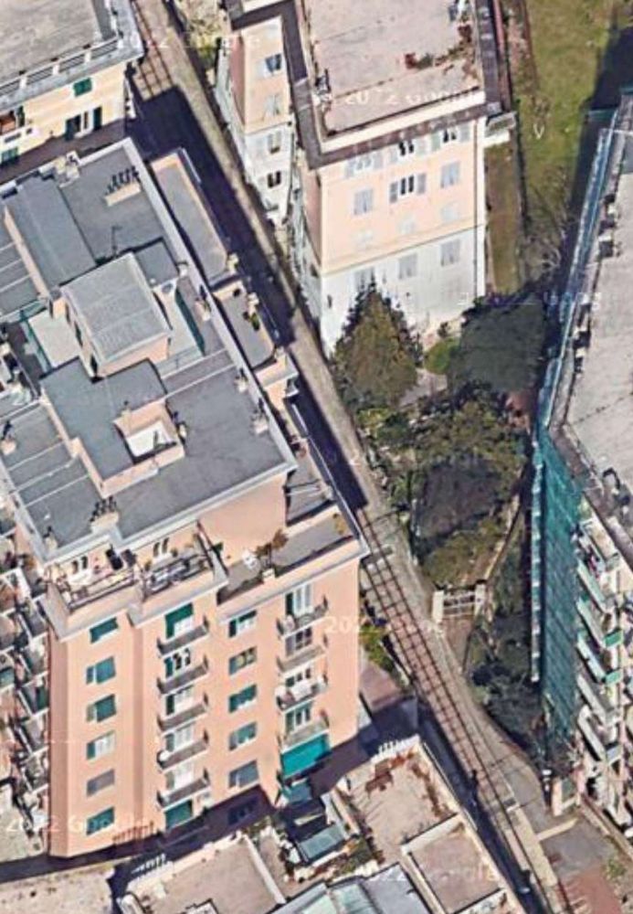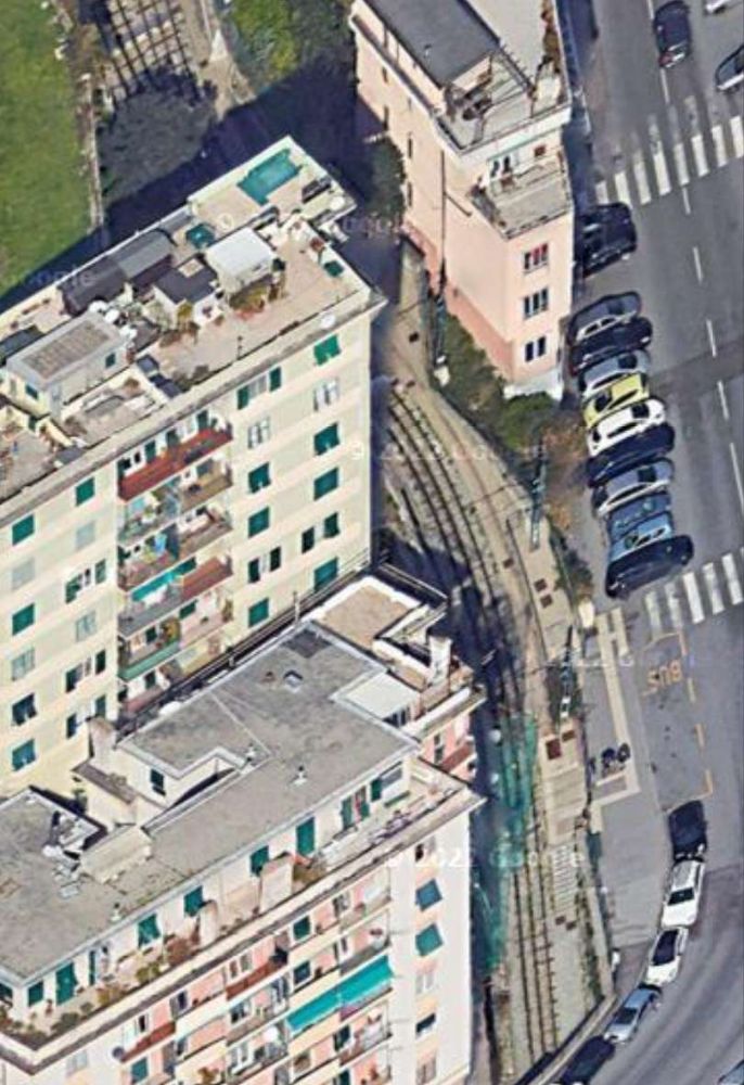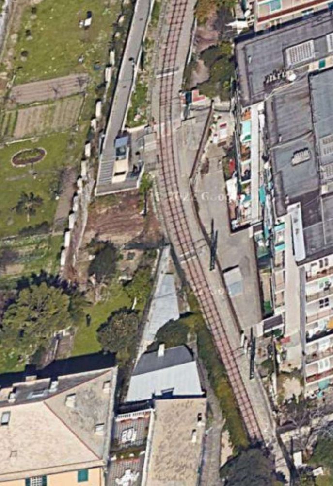 The terminus of the line directly above the tunnel portal which opens onto Genoa Railway Station. The road alongside the terminus of the line is Via del Lagaccio. [Google Earth, November 2024]