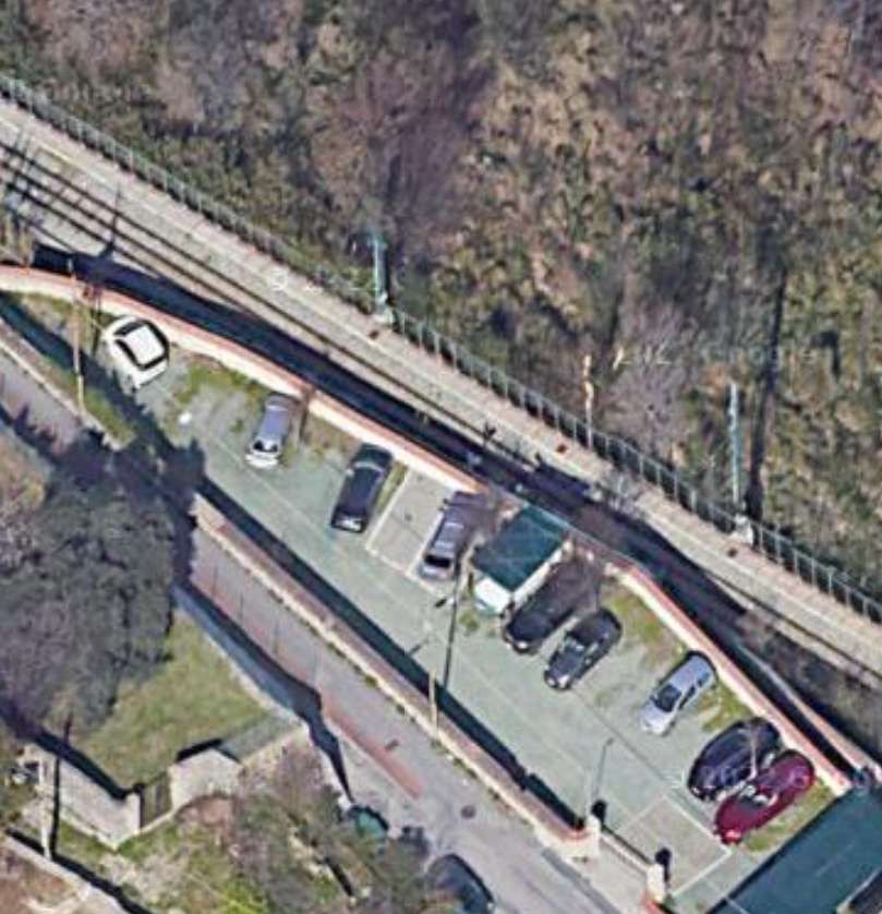 The Salita di Granarolo and the railway are separated by the parking area for the building which sits between the railway and the road on the next satellite image. [Google Earth, November 2024]