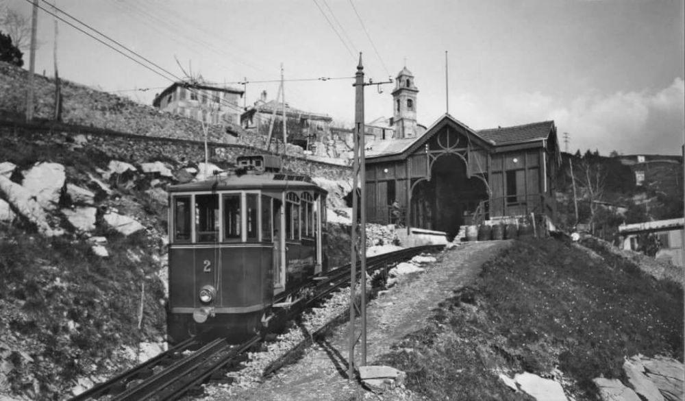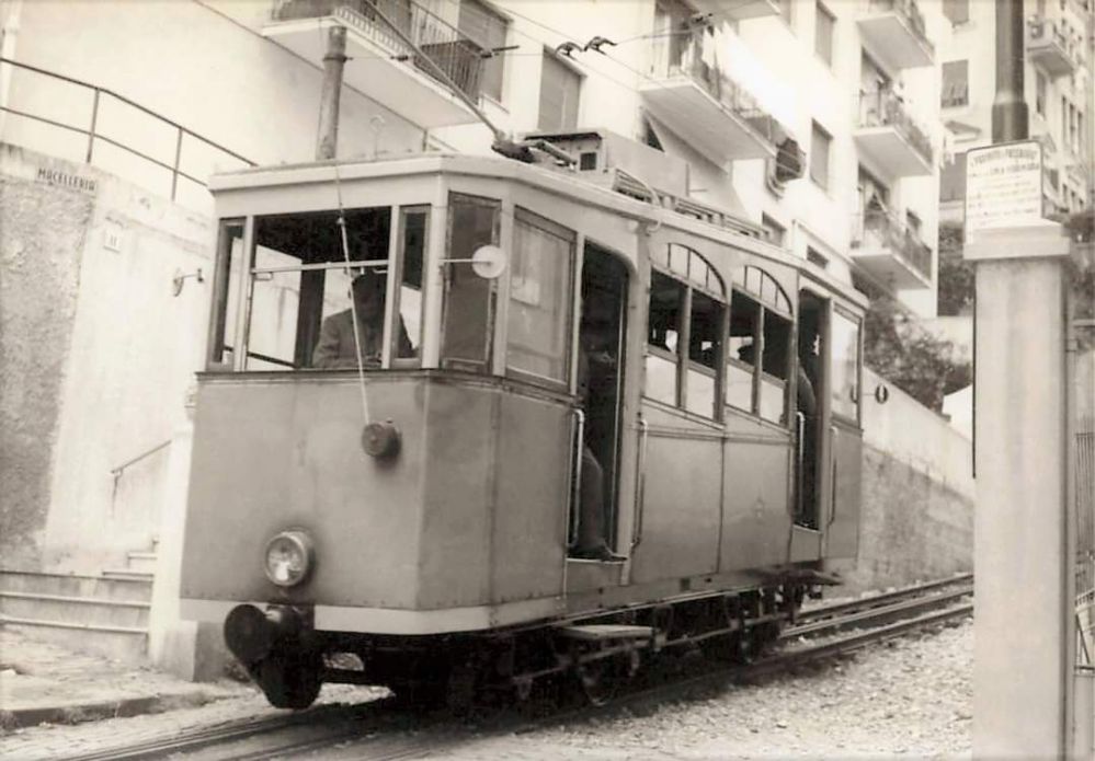 Car No. 2 close to the top of the line, possibly in the 1940s, © Public Domain. This image was shared on the Ferrovia Principe Granarolo Genova Facebook Page on 22nd May 2022. [8]
