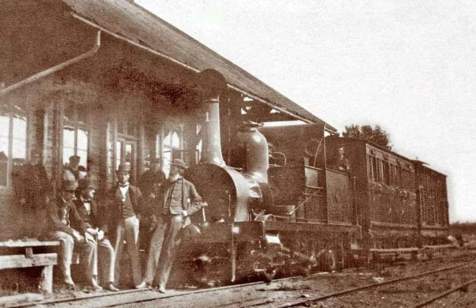 No. 1 of the Hamar – Grundset Railway shown at Løten station on 18th October 1861. It is believed that the photo was taken during a test run. [25]